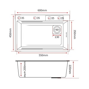 כיור נירוסטה ענק מאובזר | דגם "סלינה" | צבע שחור טיטניום | מק"ט 960/100