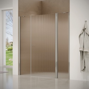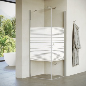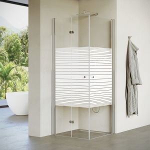 מקלחון פינתי | דופן קבועה + דלת | פרופיל כרום | זכוכית פסים | דגם אורורה | מק"ט 1337
