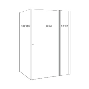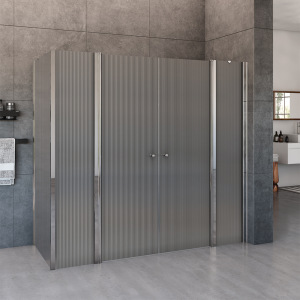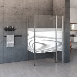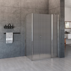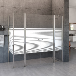 מקלחון פינתי | דופן קבועה + דלת + דופן קבועה + דופן קבועה | פרופיל כרום | זכוכית פסים | דגם לואיס | מק"ט 1380