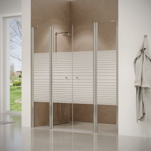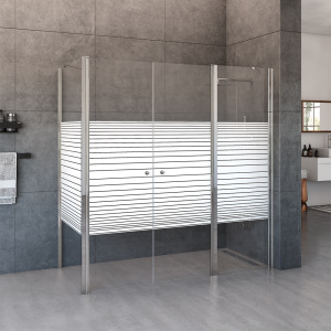 מקלחון פינתי | דופן קבועה + דלת + דלת + דופן קבועה | פרופיל כרום | זכוכית פסים | דגם טמפל | מק"ט 1359