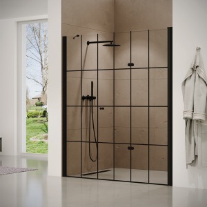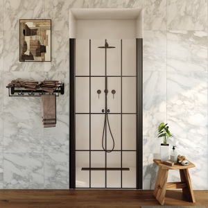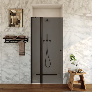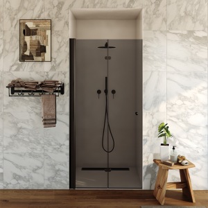 מקלחון חזית | דלת נפתחת פנימה והחוצה | פרופיל שחור מט | זכוכית אפורה | דגם מארטין | מק"ט 1282