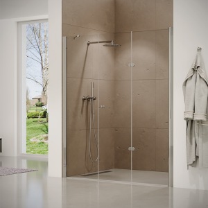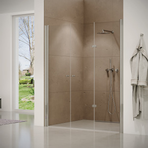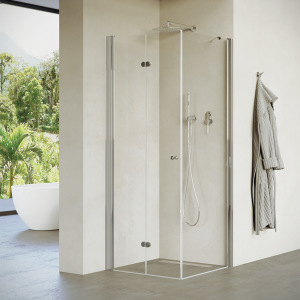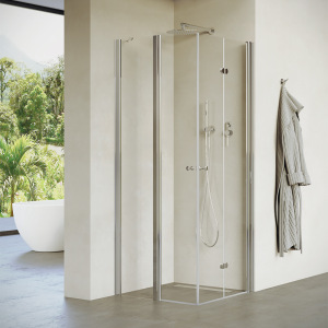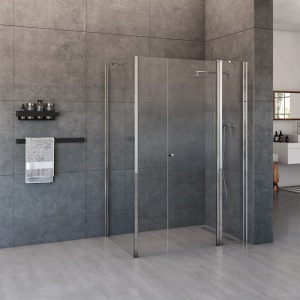 מקלחון פינתי עם דלתות נפתחות, כרום שקוף | דגם אדמס | מק"ט 5039