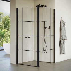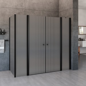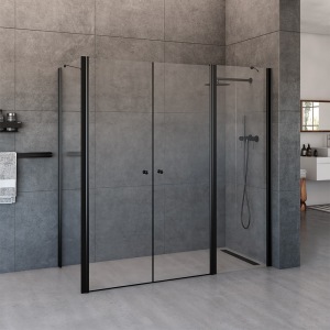 מקלחון חזית | קבוע + שתי דלתות | פרופיל שחור מט | זכוכית מאסטר ליין | דגם "קאטרו" | מק"ט 1301