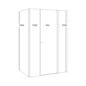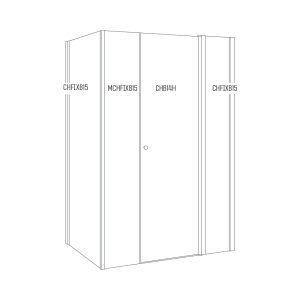 מקלחון פינתי | דופן קבועה + דלת + דופן קבועה + דופן קבועה | פרופיל כרום | זכוכית שקופה | דגם לואיס | מק"ט 1381