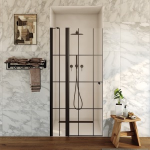 מקלחון חזית | שתי דלתות הרמוניקה | פרופיל שחור מט | זכוכית מאסטר ליין | "נלסון" | מק"ט 1289