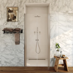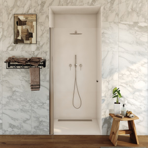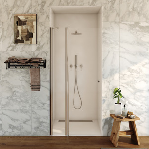 מקלחון חזית | דלת אחת פנימה והחוצה | מידה 60-90 | זהב מוברש | מק"ט 975