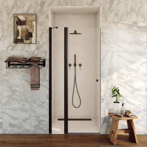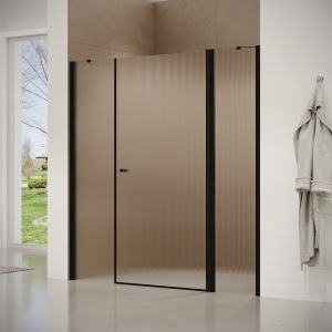 מקלחון חזית | דופן קבועה + דלת על ציר נפתחת פנימה והחוצה | פרופיל שחור מט | זכוכית מאסטר ליין | דגם "לוגן" | מק"ט 1281