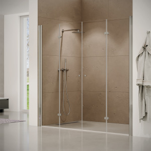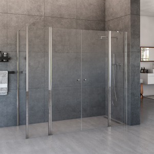 מקלחון פינתי | דופן קבועה + דלת + דלת + דופן קבועה | פרופיל כרום | זכוכית שקופה | דגם טמפל | מק"ט 1360
