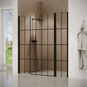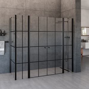 מקלחון חזית | קבוע + קבוע + דלת | פרופיל שחור | זכוכית מאסטר ליין | דגם "שרלטון" | מק"ט 1336