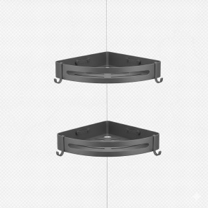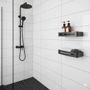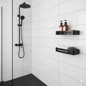 זוג מדפים פינתיים למקלחת + 4 קולבים | 30 ס"מ | אלומיניום אל חלד | שחור מט | מק"ט 205BL