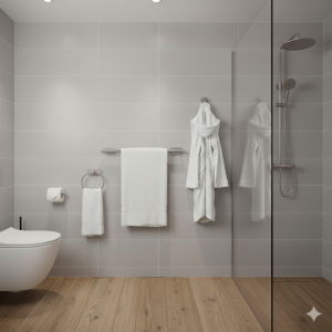 אביזרי אמבט מגוונים כמו מדפים, פחים, ומתלים למגבות, משפרים את הפונקציונליות והאסתטיקה של חדר האמבט שלכם. מדפים איכותיים שמספקים מקום לאחסון מוצרים, וסידור דקורטיבי. פחים אלגנטיים מסייעים בשמירה על ניקיון. מתלים למגבות נותנים מקום נוח ונגיש לייבוש מגבות, תוך שהם משדרגים את העיצוב עם חומרים וסגנונות שונים.