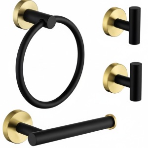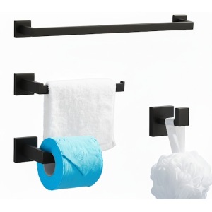 סט 4 חלקים למקלחת | 3 קולבים + מחזיק נייר (מוט מגבת רחצה 60 ס"מ) *בהדבקה* | שחור מט | מק"ט 203BL
