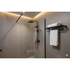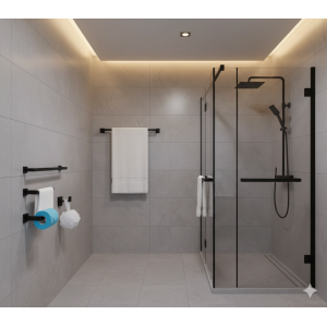 סט 4 חלקים למקלחת פרופיל מרובע | 3 קולבים + מחזיק נייר | שחור מט | מק"ט 204BL