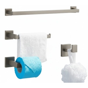 סט 4 חלקים למקלחת | 3 קולבים + מחזיק נייר (מוט מגבת רחצה 60 ס"מ) *בהדבקה* | אפור גרפיט | מק"ט 203GR