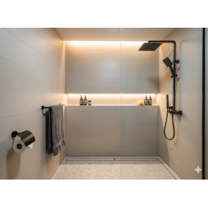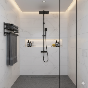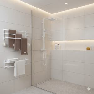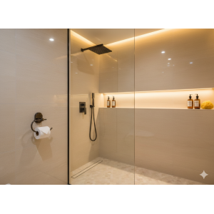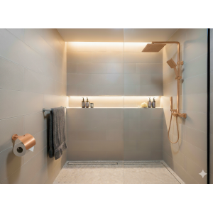 השילוב המדוד של כל אלו יוצר חלל אמבט מעוצב, פונקציונלי ונעים לשימוש.