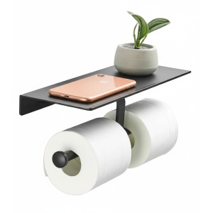 מתקן כפול לנייר טואלט + מדף | ניתן להדביק | אפור גרפיט | מק"ט 209GR