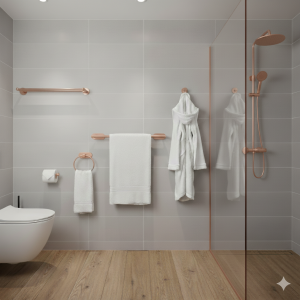 אביזרי אמבט נותנים תחושה של נוחות ופונקציונליות, מה שהופך את זמן הרחצה לפעילות מרגיעה ומפנקת.