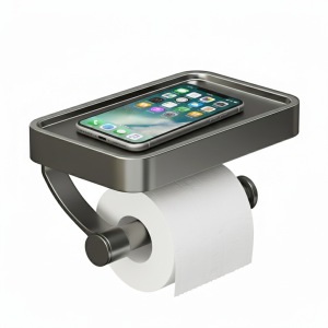 מתקן לנייר טואלט + מדף נוי אופנתי איכותי | אפור גרפיט | מק"ט 346/6