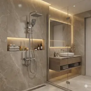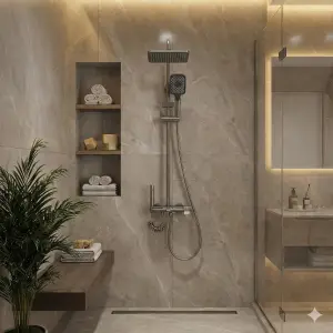 המערכת בנויה עם חומרים מובחרים לעמידות, מבטיחה חווית מקלחת מפוארת וארוכת טווח, ותהפוך לחלק בלתי נפרד משגרת ההרפיה היומיומית שלכם.