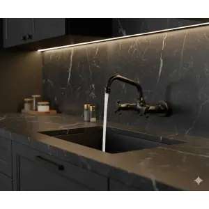 ברז סוללה מהקיר למטבח/כיור מקלחת סגנון ענתיק | שחור מט | מק"ט 467