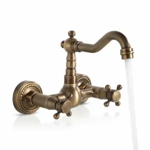 ברז סוללה מהקיר למטבח / כיור מקלחת | דגם "יאניס" | זהב מוברש ענתיק | מק"ט 139