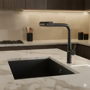 ברז נשלף למטבח מראה אלגנטי יוקרתי שחור מט מק"ט 137