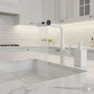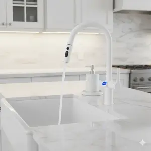 ברז מטבח נשלף דגם "קמרון" עם צג טמפרטורה מובנה | לבן | מק"ט 101/5