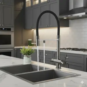 ברז מטבח מעוצב | 2 מצבי זרימה | פיה גמישה | שחור מט | מק"ט 100