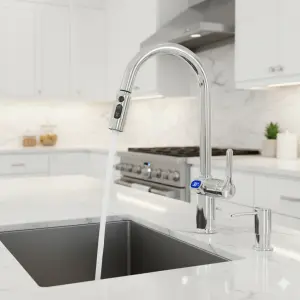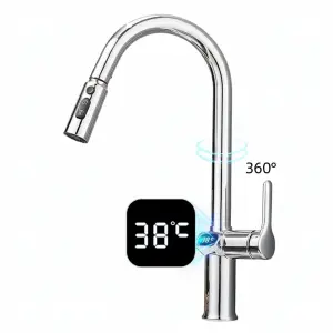 ברז מטבח נשלף דגם "קמרון" עם צג טמפרטורה מובנה | כרום | מק"ט 101