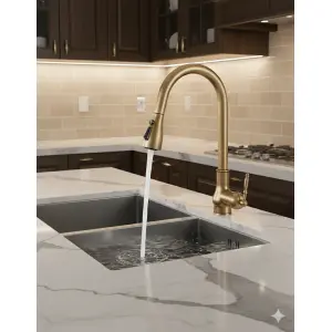ברז מטבח נשלף | 2 מצבי זרימה | אופנתי מעוצב | K900BG | זהב מוברש