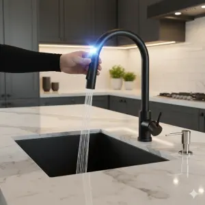 ברז למטבח נשלף | אופנתי יוקרתי | מגע טאצ' | אפור גרפיט | מק"ט 180/6