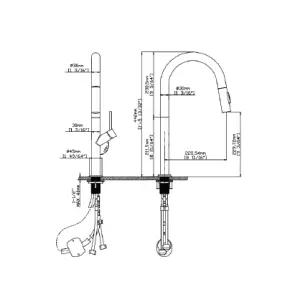 ברז מטבח נשלף זוויתי | שחור מט | מק"ט 644