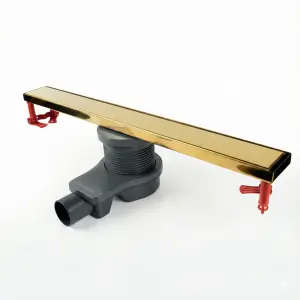 תעלת ניקוז 7/80 | נירוסטה אל חלד | יציאה ל 4 צול + מתאם ל 2 צול מונע ריחות | אפשרות להכנסת אריח | זהב | מק"ט 725