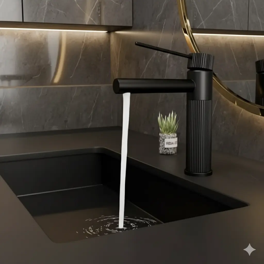 ברז אופנתי מעוצב לכיור אינטגרלי דגם "עומרי" שחור מט מקט 093/1
