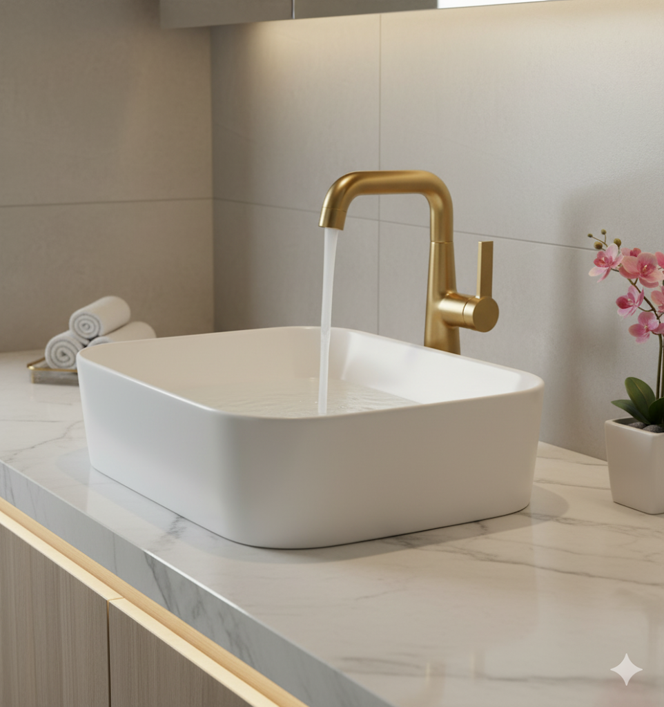 ברז בינוני לכיור מקלחת דגם "ברונו" | זהב מוברש | מק"ט 930/2