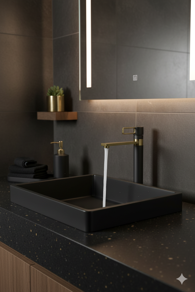 ברז פרח גבוה המותאם במיוחד עבור כיור מונח. בעל גוף יצוק וחזק – Gravity Casting לעמידות איתנה לשנים רבות, מנגנון קרמי מקורי ומתקדם לשליטה מדויקת בזרימת המים,