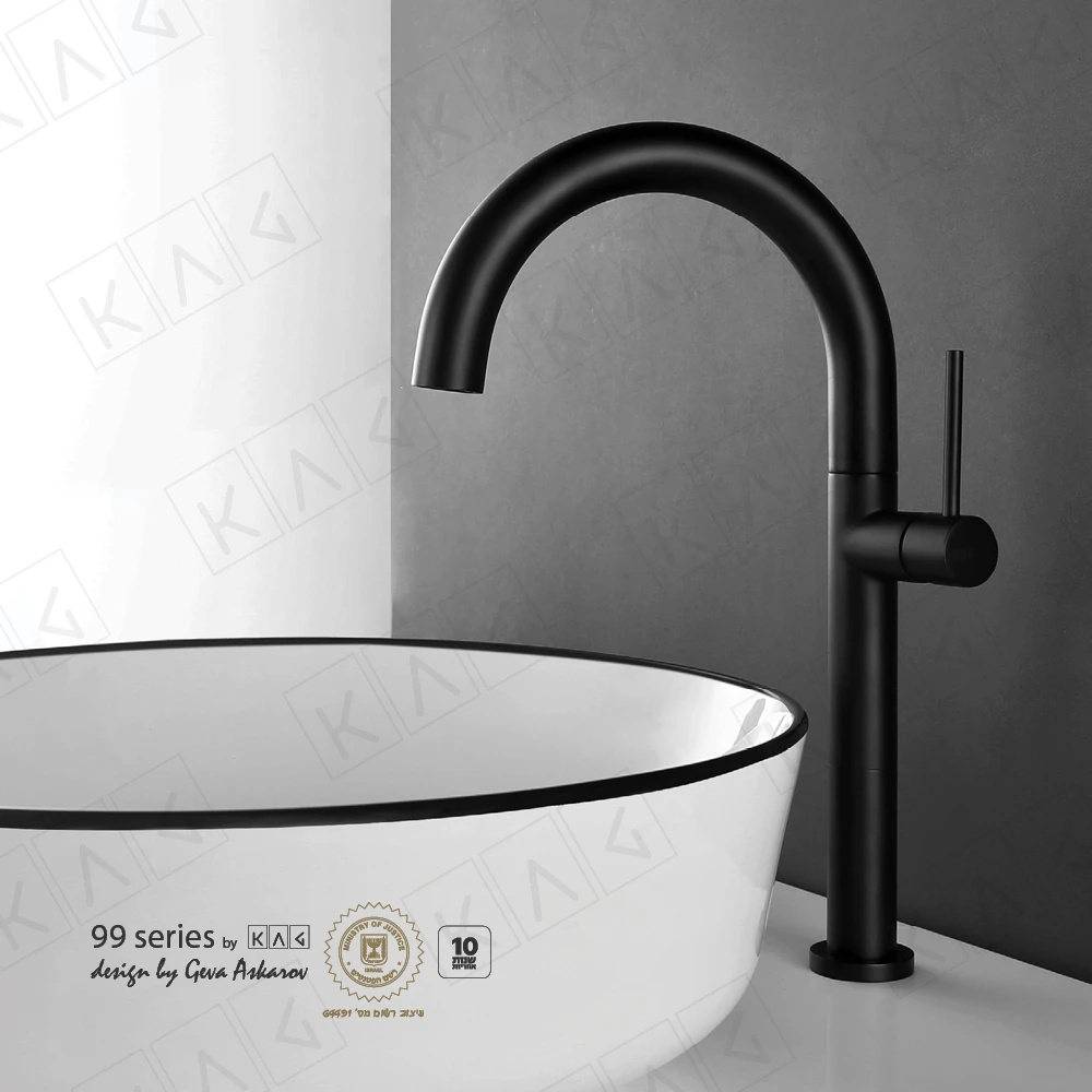 ברז חם קר גבוה לכיור מונח | 10 שנות אחריות | שחור מט | מק"ט 767/1