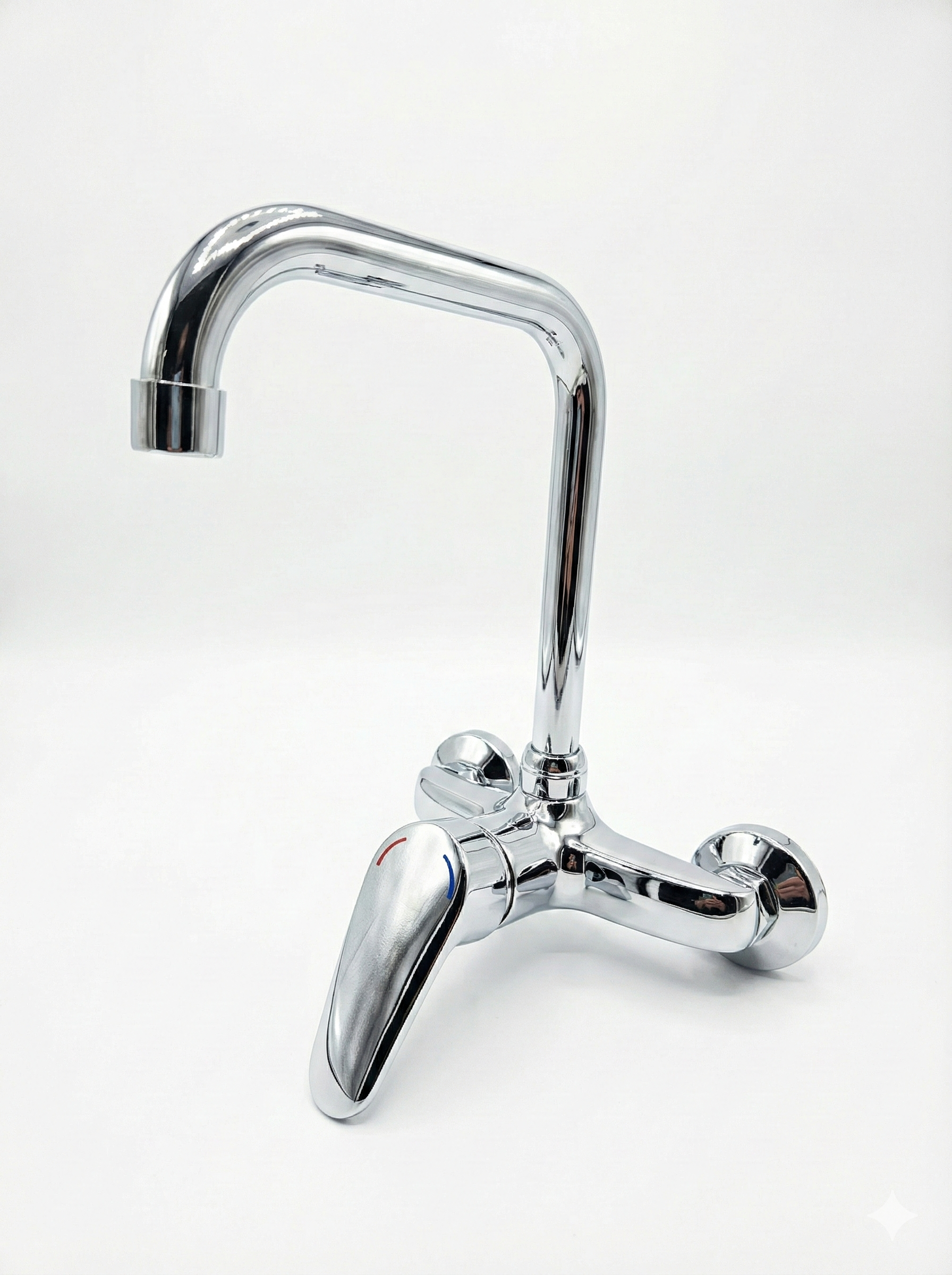 ברז יוצא מהקיר למטבח או חדר מקלחת פיית קשת גבוהה | כרום | מק"ט 020/1