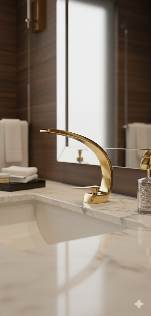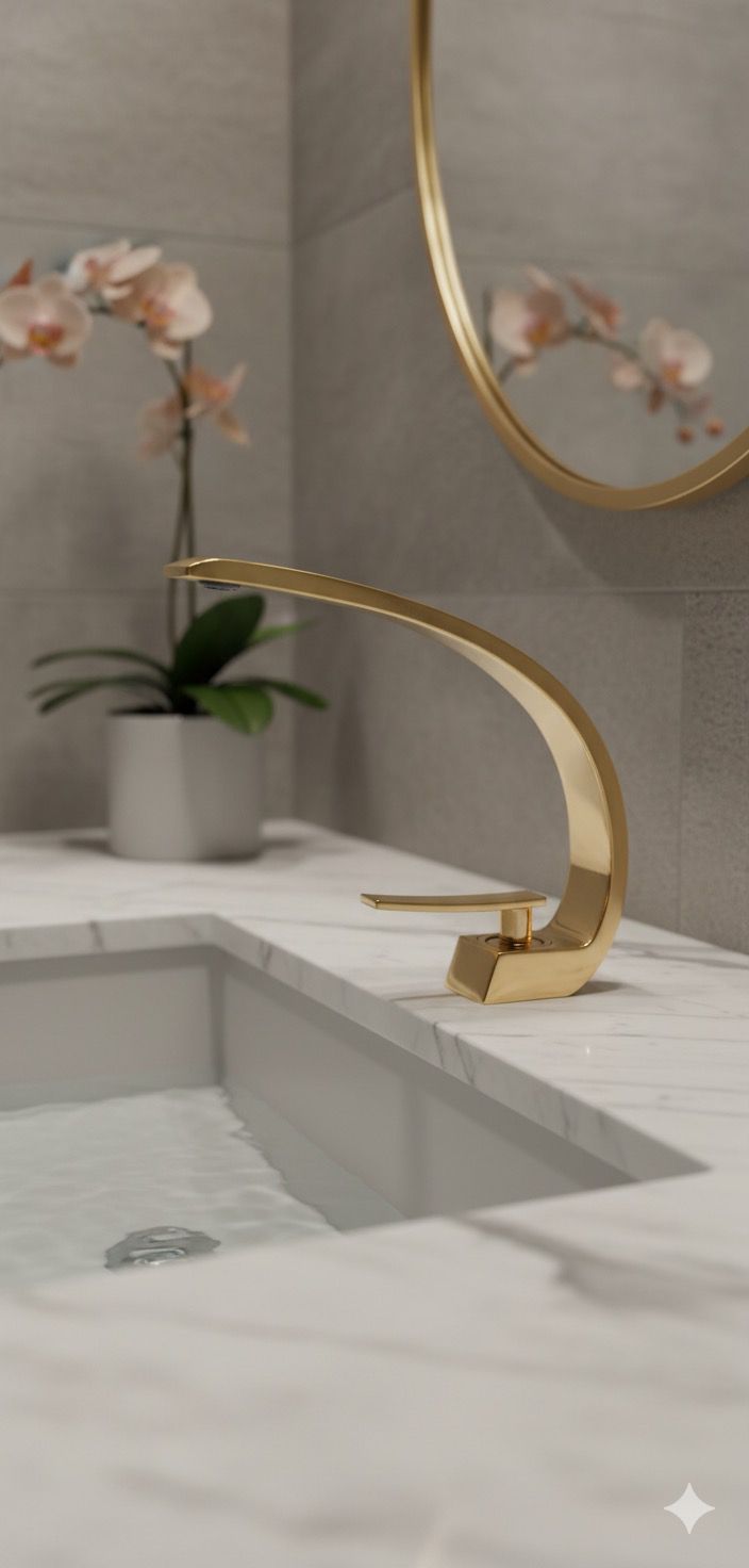 ברז לכיור מקלחת אופנתי מעוצב חם קר זהב מוברש מק"ט 805