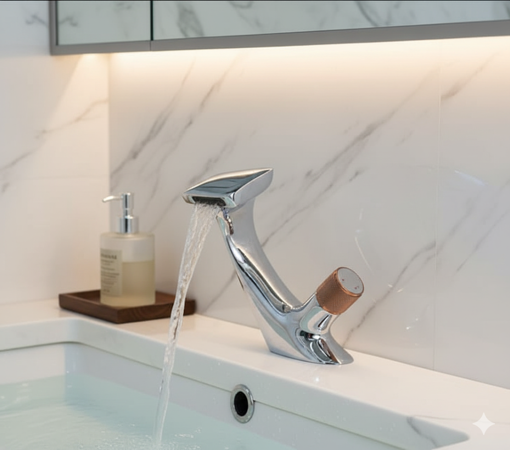 1 ביקורת עבור ברז לכיור מקלחת אופנתי מעוצב חם קר כרום ידית ברונזה מק"ט 504