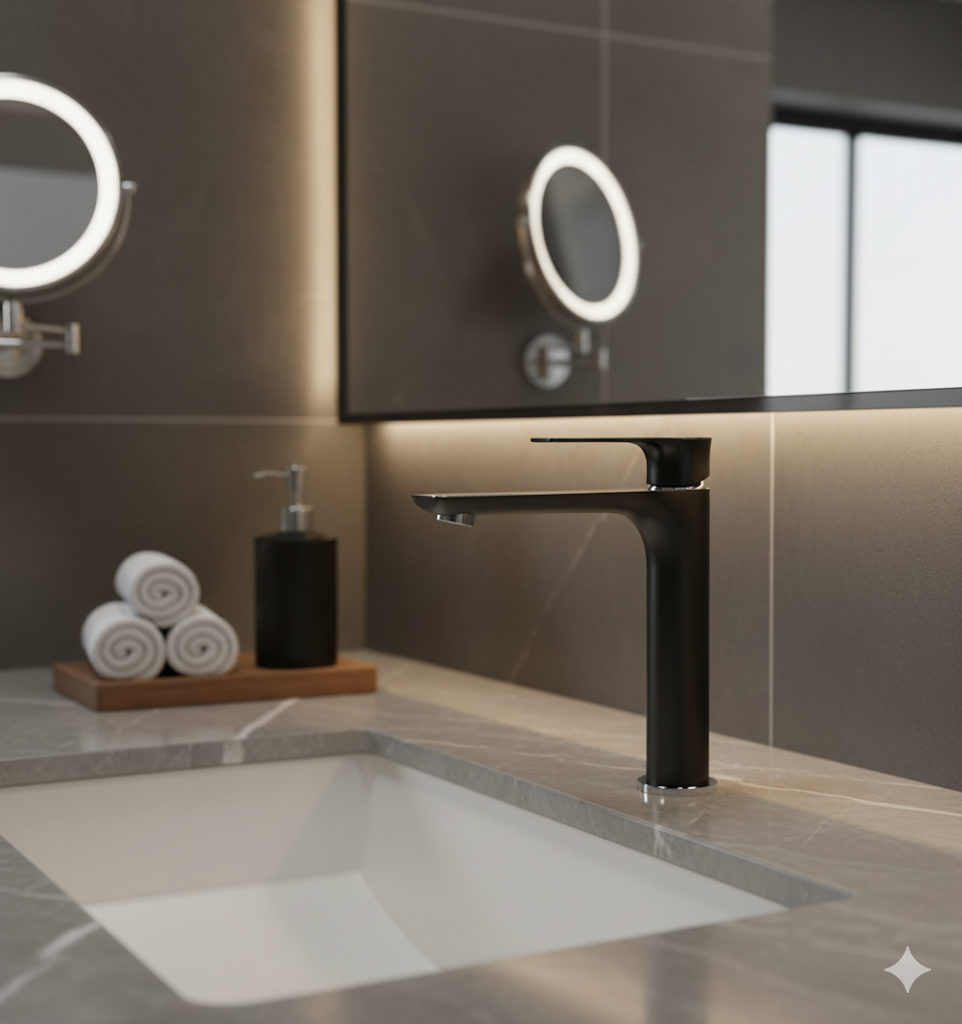 ברז לכיור מקלחת בעל גוף יצוק וחזק לעמידות איתנה לשנים רבות.