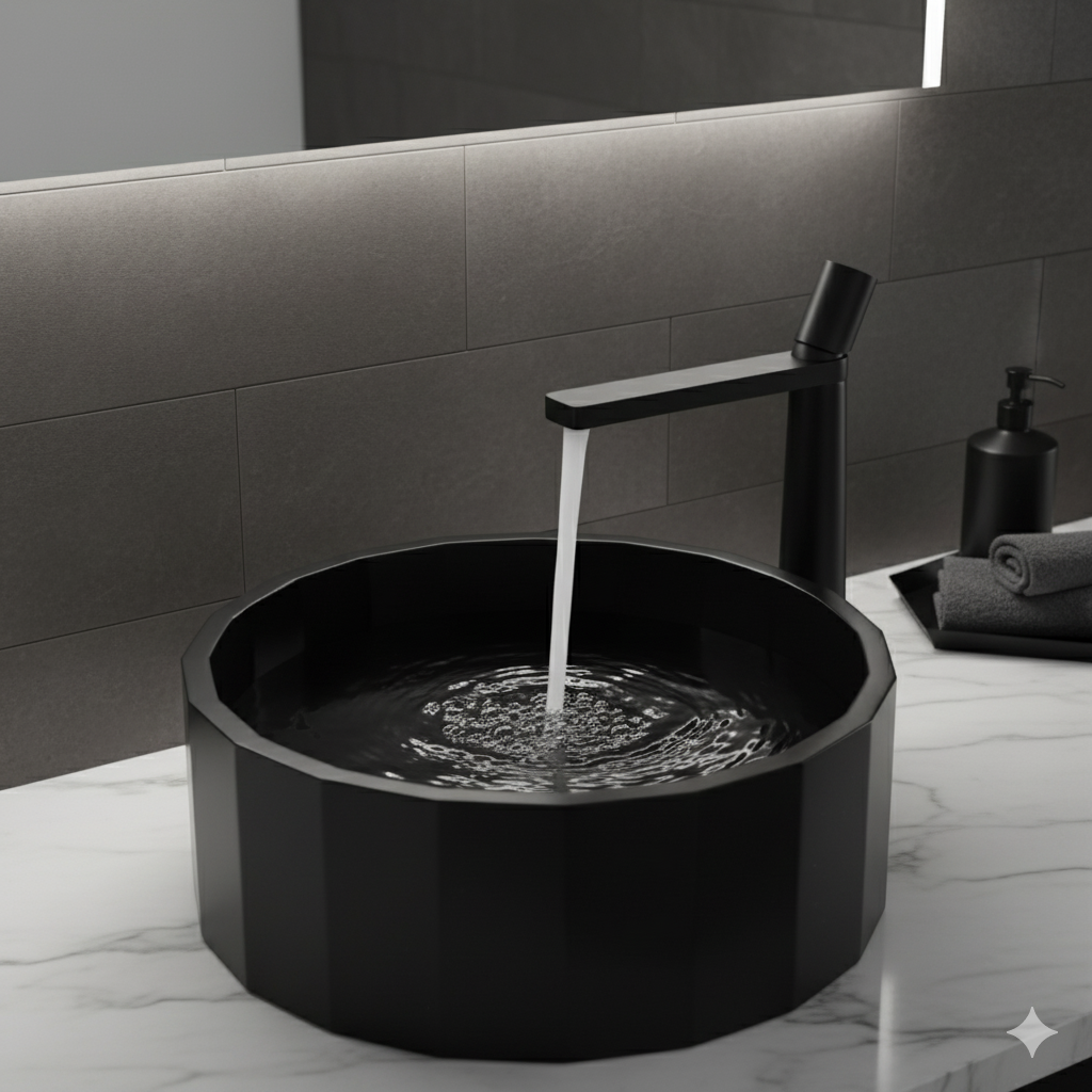 ברז לכיור מקלחת מונח גבוה | דגם "ראדו" | שחור מט | מק"ט 527/1