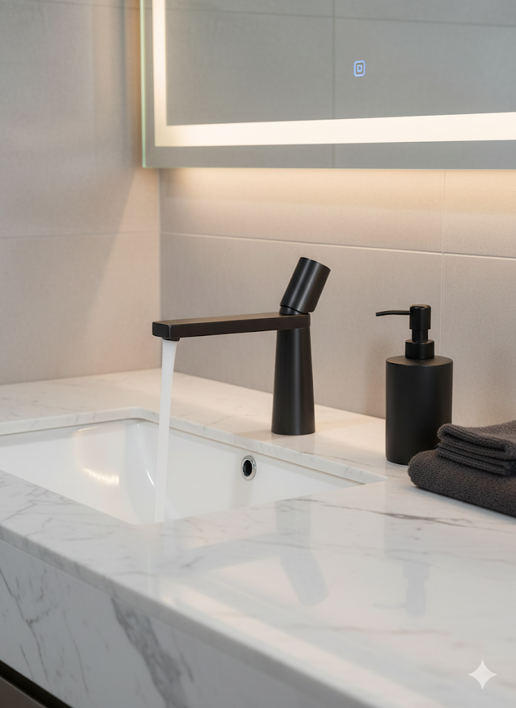 ברז נמוך לכיור מקלחת אינטגרלי | דגם "ראדו" | אפור גרפיט | מק"ט 1400/6