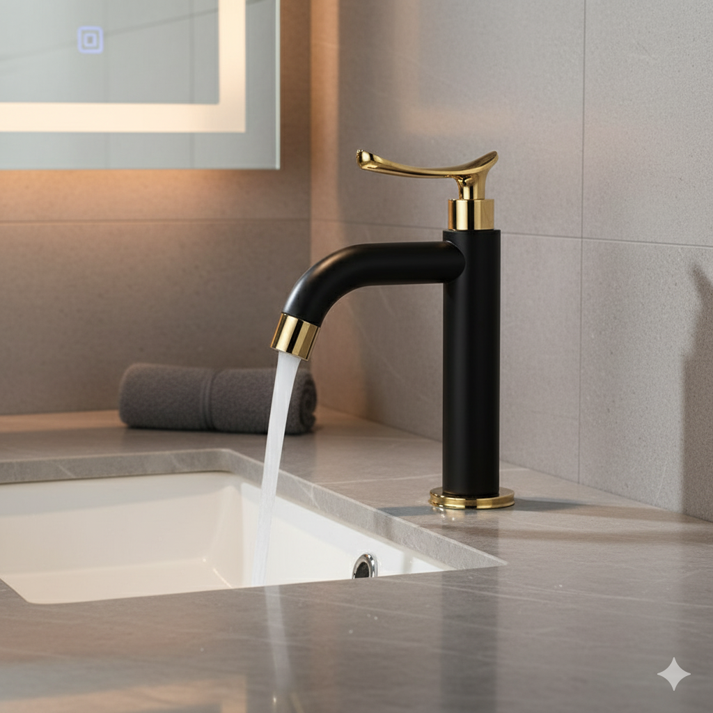 1 ביקורת עבור ברז לכיור מקלחת | קרים בלבד | שחור מט משולב זהב | מק"ט 344/1