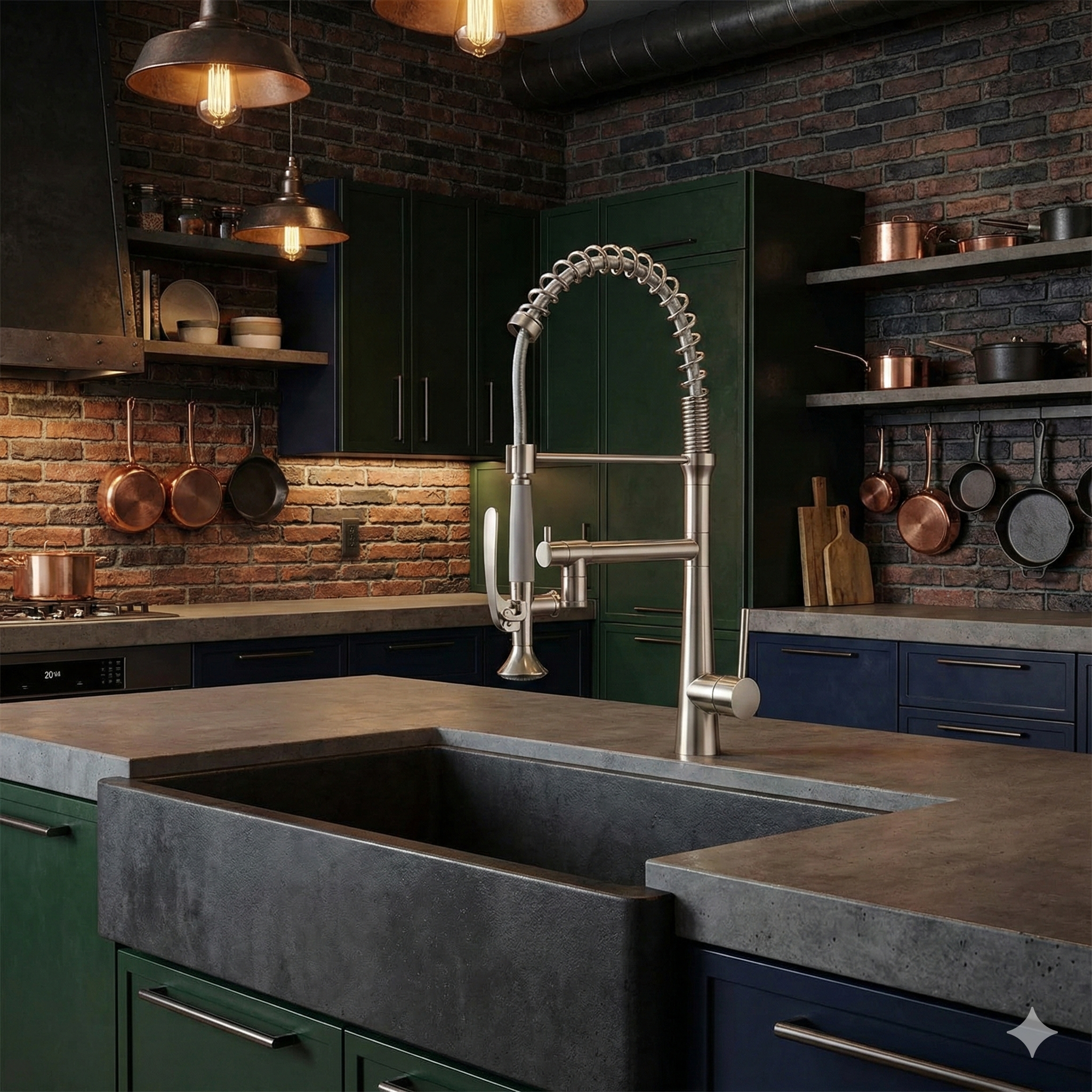 ברז מטבח בעיצוב תעשייתי דגם "פרו ג'ט" | ניקל מוברש | מק"ט 1700/3