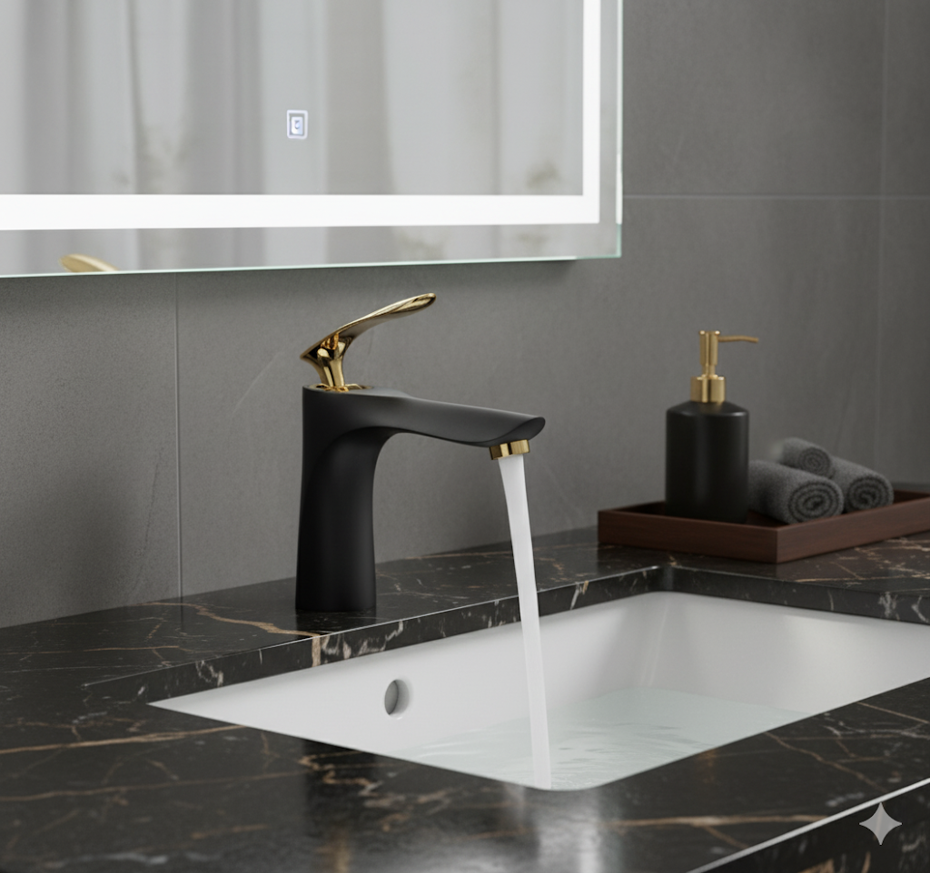 1 ביקורת עבור ברז מעצבים לכיור מקלחת | חם קר | זהב משולב שחור מט | מק"ט 237