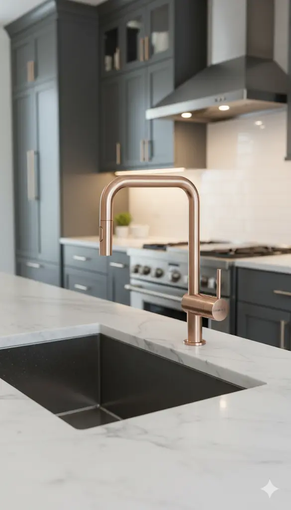 ברז נשלף למטבח "גרואה" | 2 מצבי זרימה | רוז גולד מוברש | מק"ט 1000
