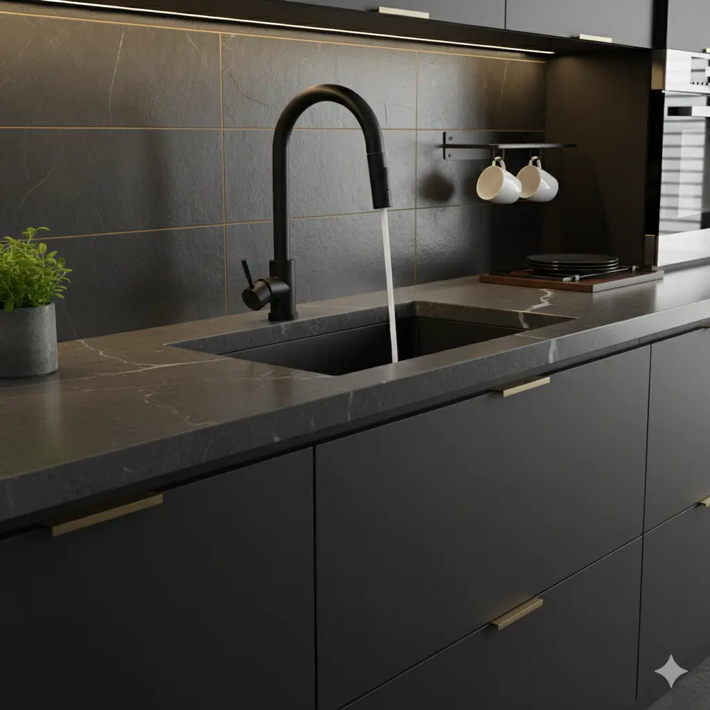 ברז נשלף למטבח מראה אלגנטי יוקרתי שחור מט מק"ט 137