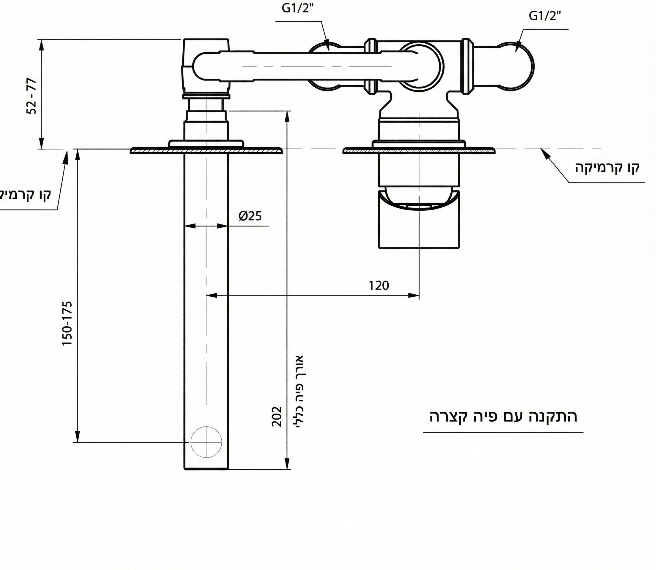 ברז קיר פיה קצרה לכיור – כיסוי | חמת | 7 שנים אחריות | אפור גרפיט | 305301GR