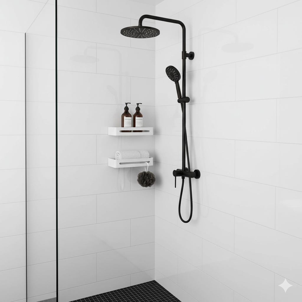 1 ביקורת עבור זוג מדפים ישרים למקלחת | אלומיניום קשיח | 32.5 ס"מ + 4 קולבים | לבן מט | מק"ט 206WH
